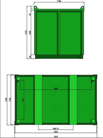 【再入荷】2.0 2m³ フォークリフト対応 バッカン 産廃ボックス 水抜け穴あり 大型 ゴミ箱 鉄箱 スクラップ コンテナ 外寸約 幅1116長さ1916mm高1215mm
